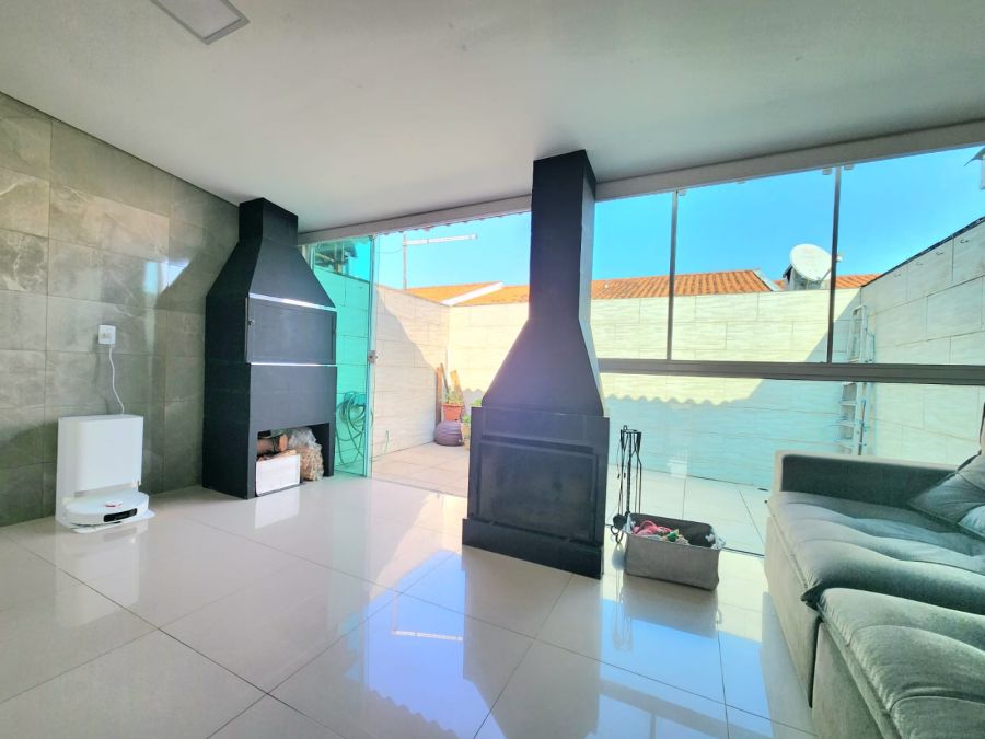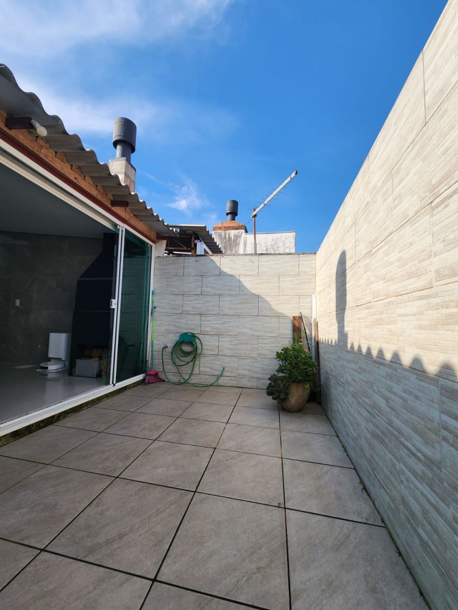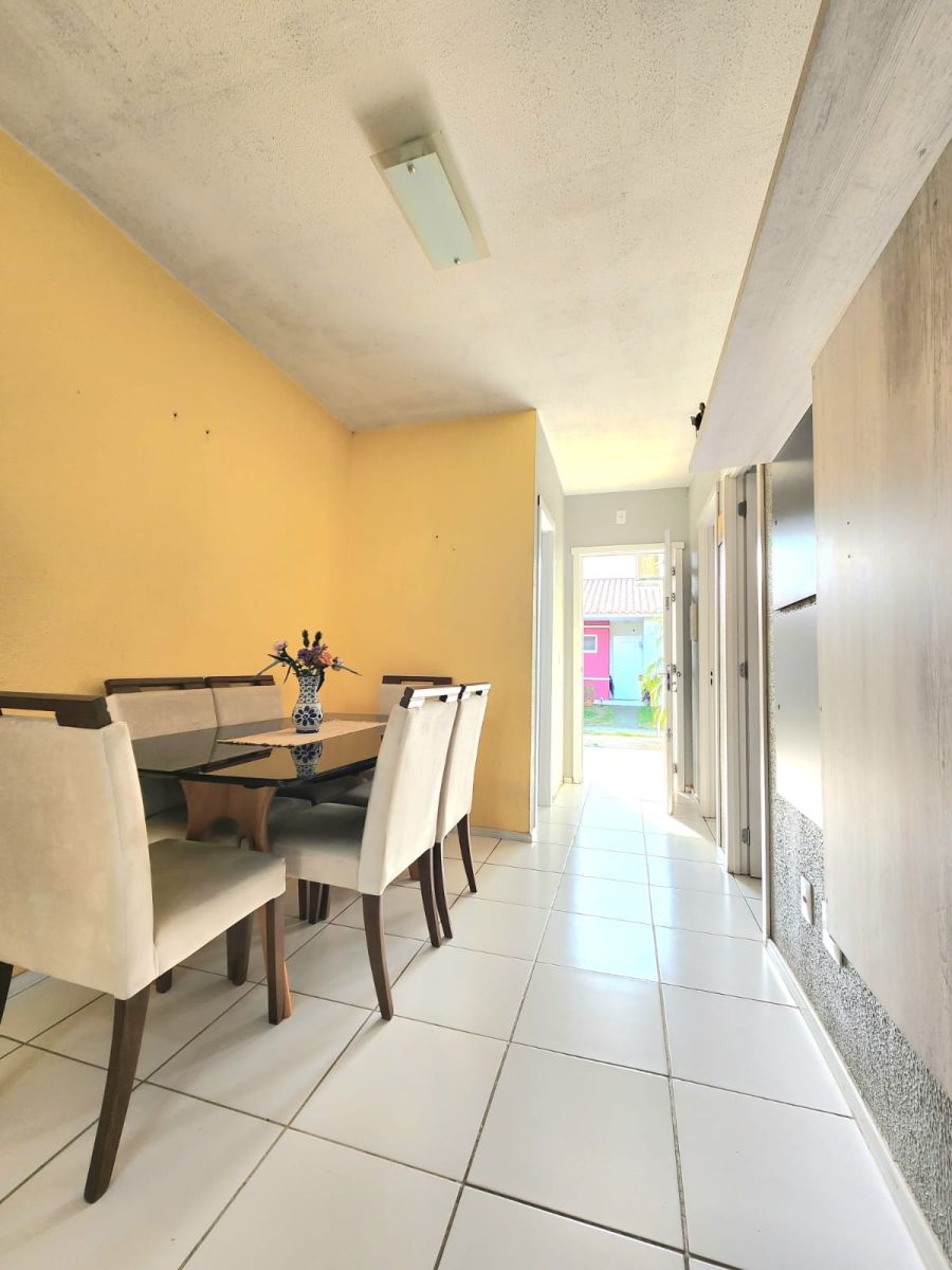 Casa no condomínio Moradas Caminho do Meio, sendo 02 dormitórios, sala estar com churrasqueira e lareira, sala de jantar, cozinha, área de serviço com claraboia, banheiro social reformado e com box de vidro. Área construída da casa são 73m² e área do pátio fundos é 10m². Fica os móveis sob medida, cortina retrátil junto a claraboia da área de serviço, área de estar com piso em porcelanato, área externa com iluminação natural. Condomínio com portaria 24 horas, salão de festas, playground, vaga para visitantes e muito mais.